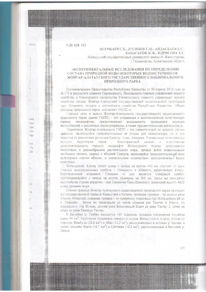 Жаңалықтар Жоңғар-Алатауы мемлекеттік ұлттық табиғи паркінің кейбір су көздерінің табиғи су құрамын анықтау бойынша эксперименттік зерттеулер (2013 ж.)Жоңғар-Алатауы мемлекеттік ұлттық табиғи паркінің кейбір су көздерінің табиғи су құрамын анықтау бойынша эксперименттік зерттеулер (2013 ж.)by ZhongarAlatau2 апреля, 20139 февраля, 2023 Добавить комментарий Отменить ответВаш адрес email не будет опубликован. Обязательные поля помечены *Имя * Email * Сайт Комментарий * Сохранить моё имя, email и адрес сайта в этом браузере для последующих моих комментариев.