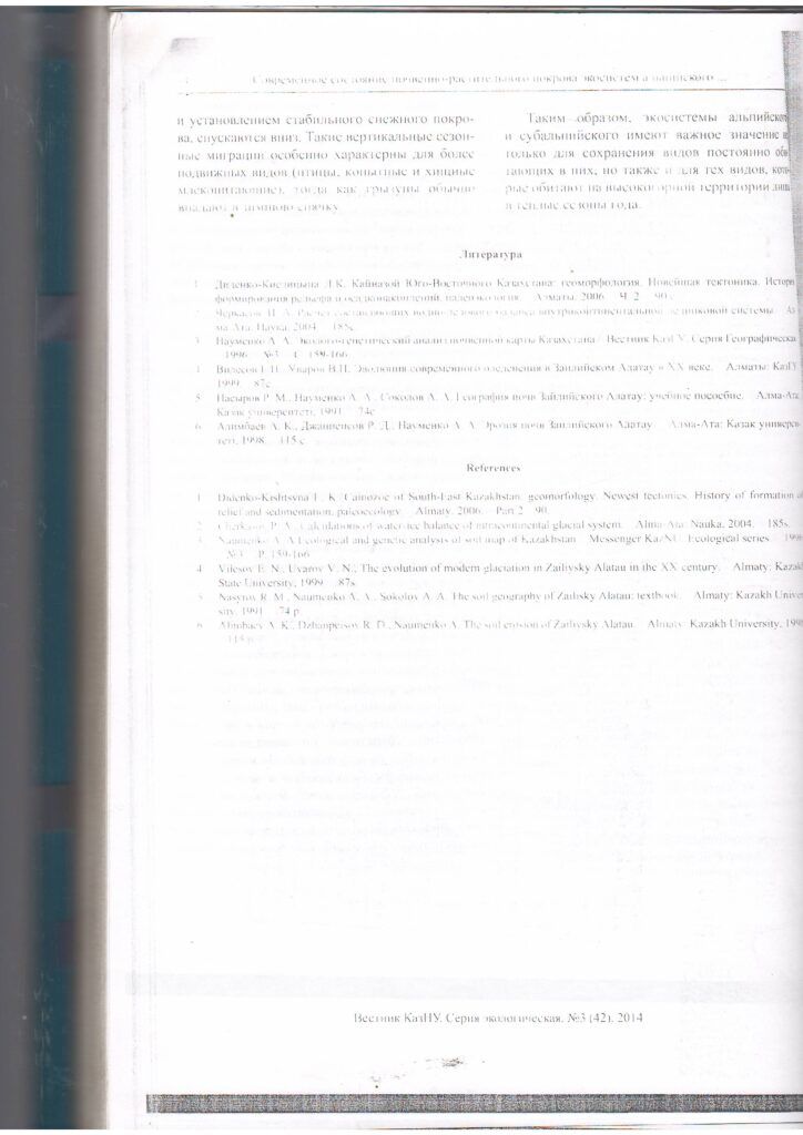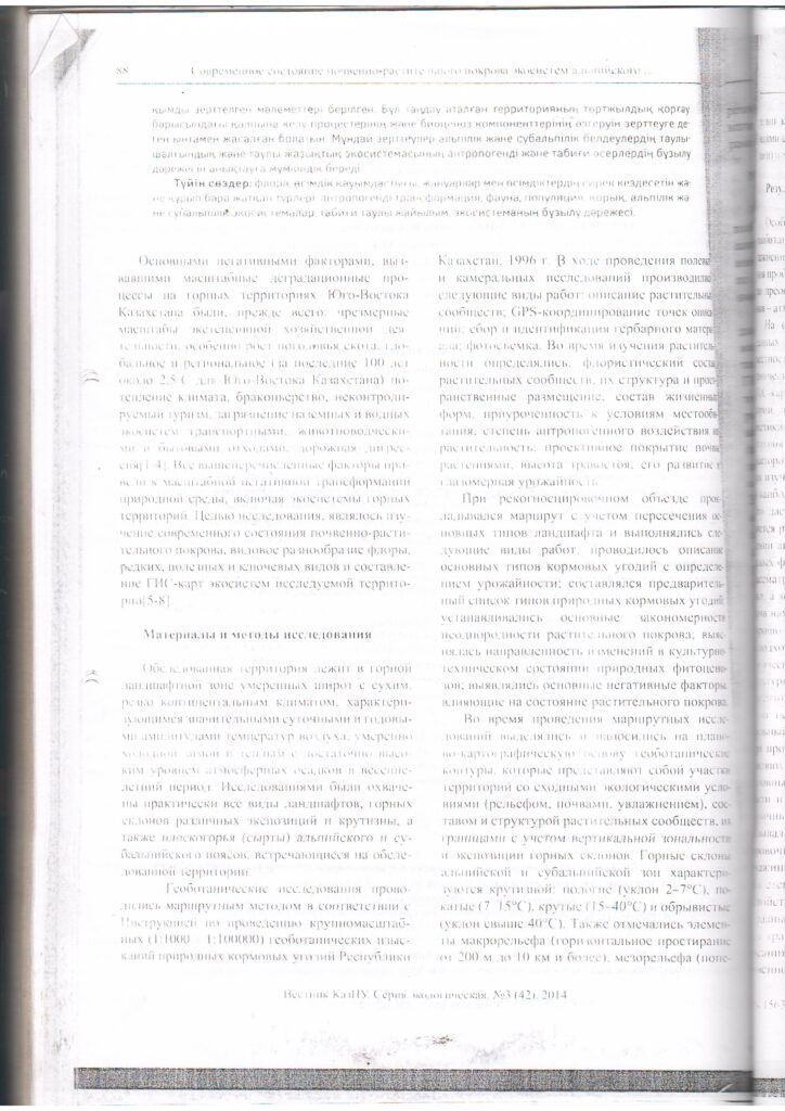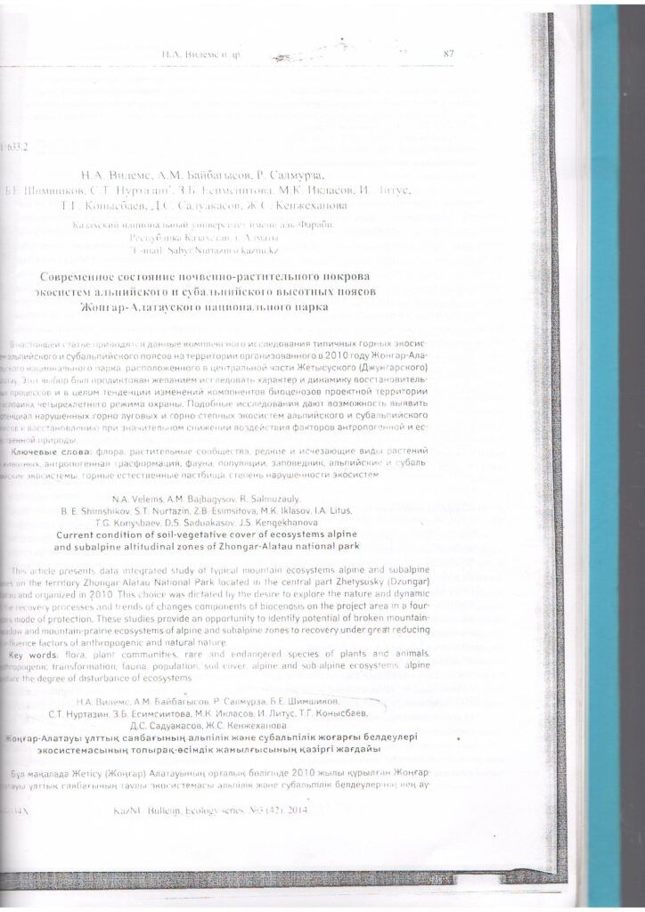 Жаңалықтар Жоңғар-Алатауы ұлттық паркінің альпі және субальпі биіктік белдеулері экожүйелерінің топырақ-өсімдік жамылғысының қазіргі жағдайы (2014 ж.)Жоңғар-Алатауы ұлттық паркінің альпі және субальпі биіктік белдеулері экожүйелерінің топырақ-өсімдік жамылғысының қазіргі жағдайы (2014 ж.)by ZhongarAlatau3 июня, 20149 февраля, 2023 Добавить комментарий Отменить ответВаш адрес email не будет опубликован. Обязательные поля помечены *Имя * Email * Сайт Комментарий * Сохранить моё имя, email и адрес сайта в этом браузере для последующих моих комментариев.