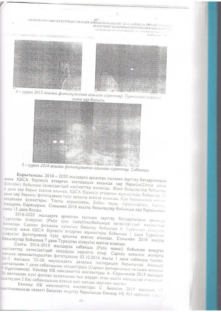 Жаңалықтар Жоңғар — Алатауы МҰТП аумағындағы мысықтар тұқымдасының экологиялық жағдайы (2016 ж.)