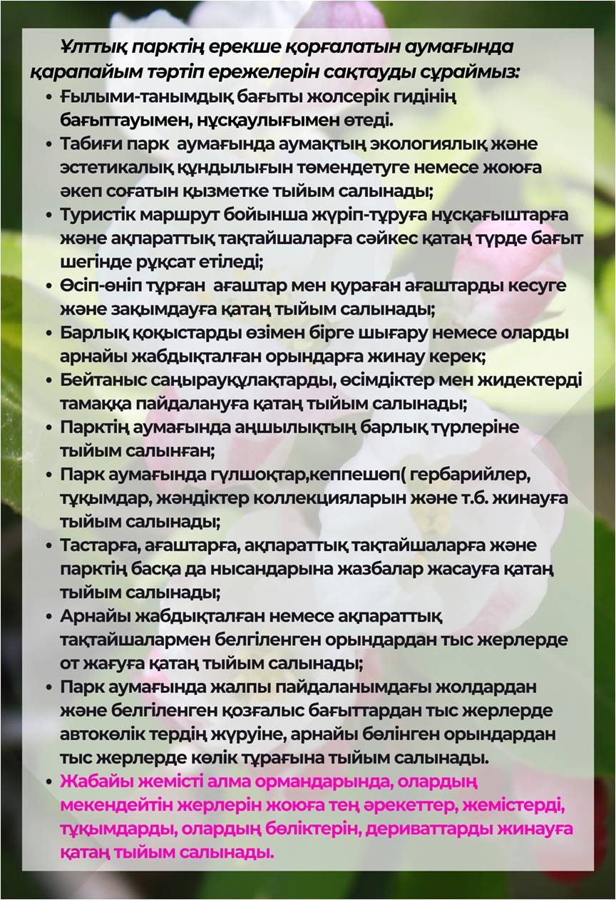 Жаңалықтар ЕСКЕРТПЕ ПАРАҚШАСЫ. Ғылыми танымдық туры.(нақты жабайы жемісті Сиверс алма ағашының өсетін жерлерімен)