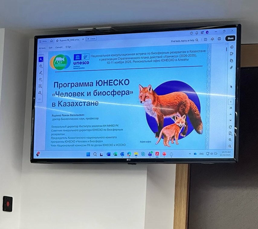 2025 жылдың 10–11 қараша күндері Алматы қаласында ЮНЕСКО-ның ұйымдастыруымен «Қазақстандағы биосфералық резерваттар бойынша ұлттық кеңес беру кездесуі: Ханчжоу іс-қимыл жоспарын іске асыру жолында» атты іс-шара өтті.