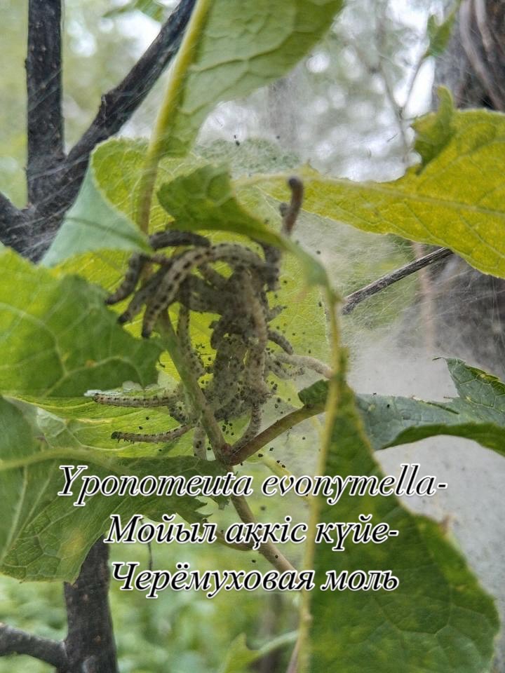 Мойыл ақкіс күйе көбелегі (Yponomeuta evonymella) - 60 га. алма аққіс күйе көбелегі (Yponemeuta malinellus) - кішігірім зақымданған (2 га), ошақтары төмендеді.