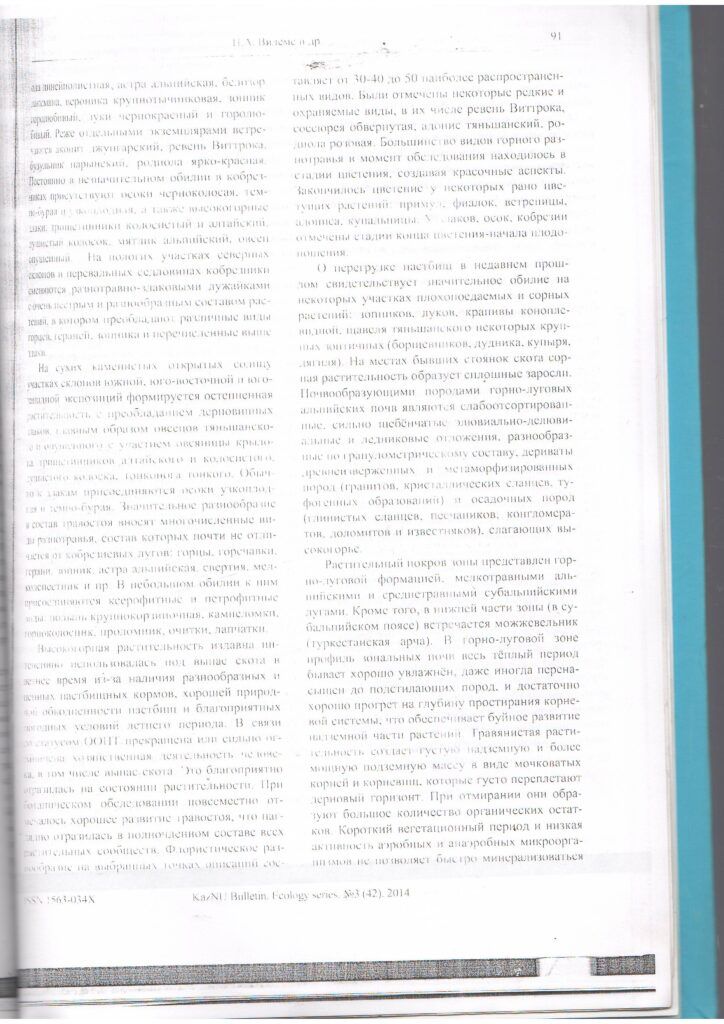 НовостиСовременное состояние почвенно-растительного покрова экосистем альпийского и субальпийского высотных поясов Жонгар-Алатауского национального парка (2014 г.)