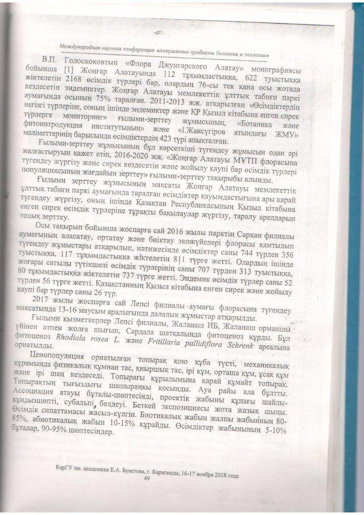 Инвентаризация растительного мира на территории Жонгар-Алатауского государственного национального природного парка, Лепсинского филиала (2018 г.)