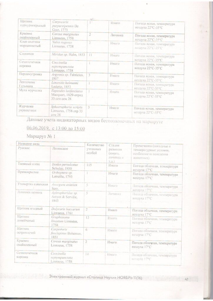 Учет численности беспозвоночных, обитающих на территории Жонгар-Алатауского государственного национального природного парка за 2019 г. (2019 г.)