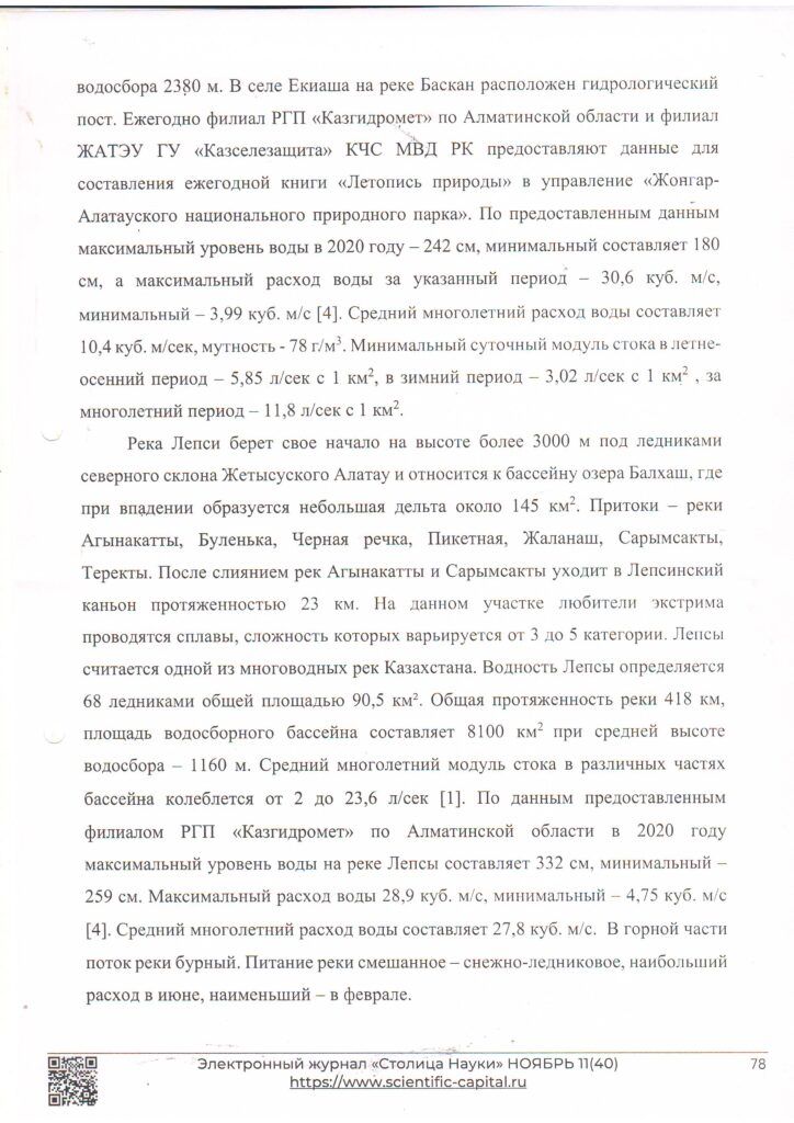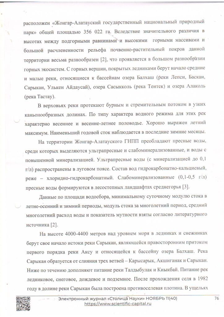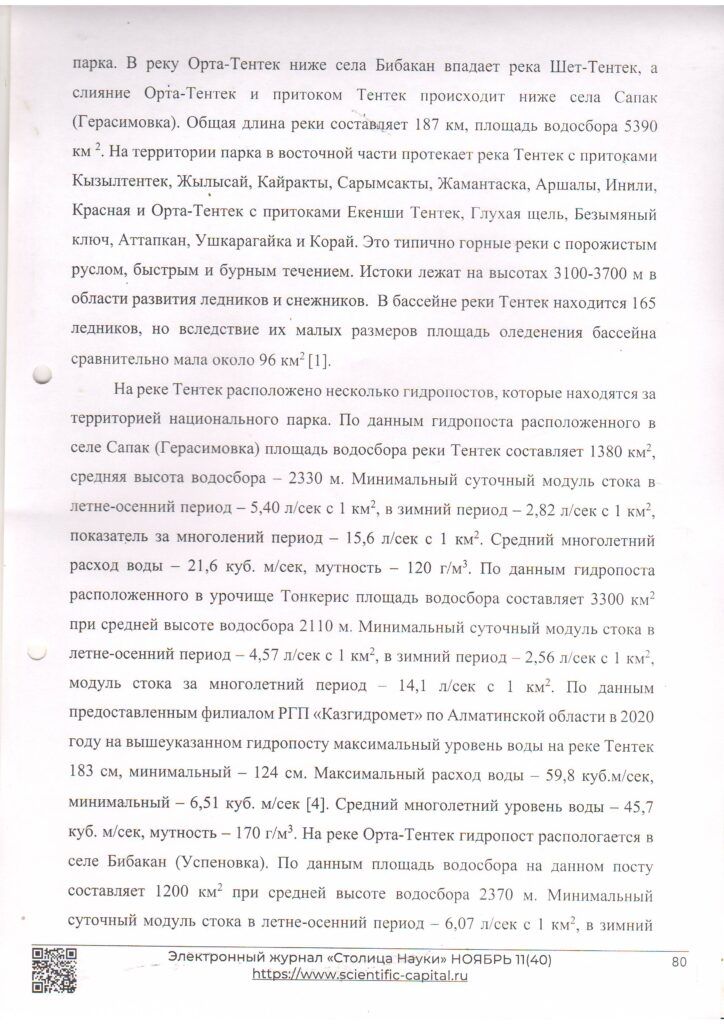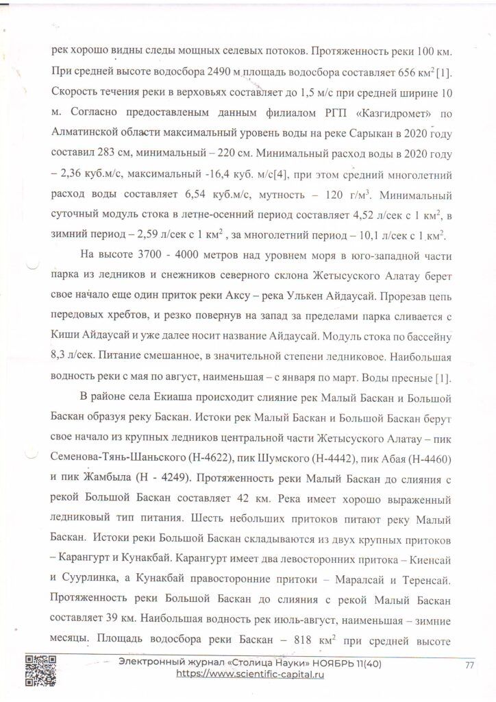 Реки Жонгар-Алатауского государственного национального природного парка (2021 г.)