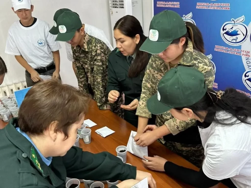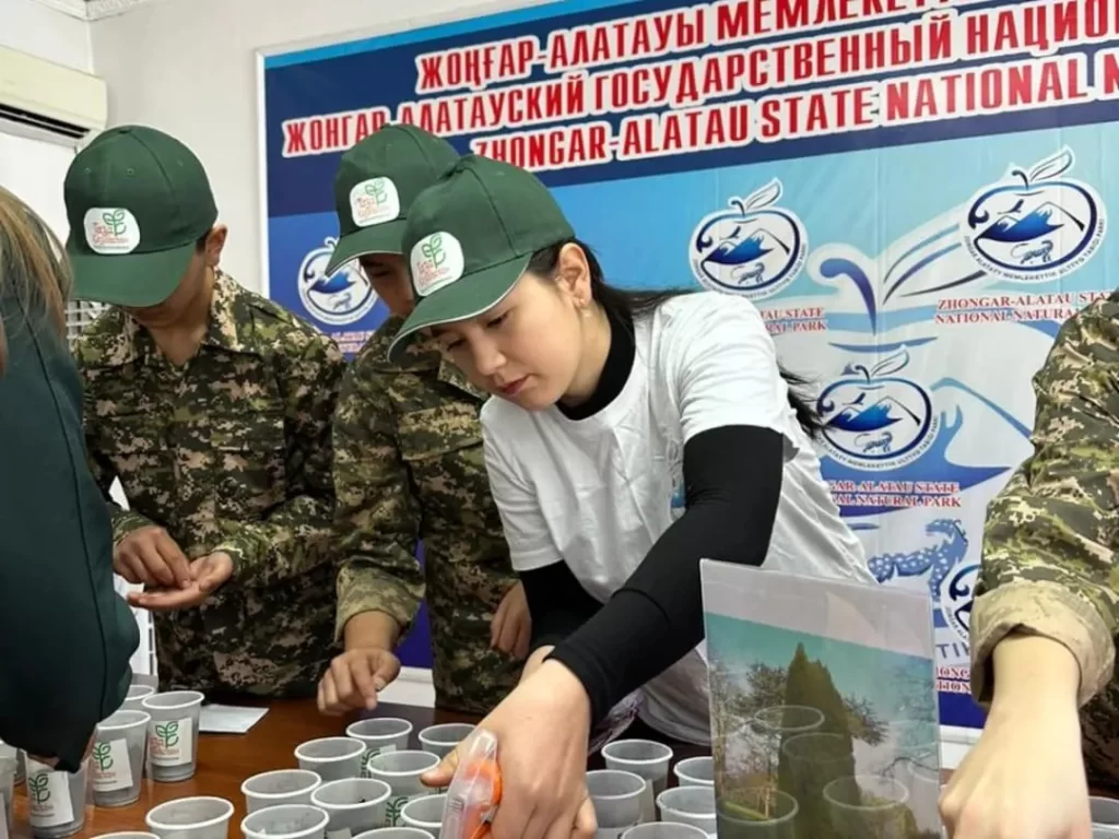 Общенациональная экологическая акция «Таза Қазақстан” — это не просто лозунг, а комплексная программа, направленная на решение актуальных экологических проблем страны. 24.01.2025 г. сотрудниками РГУ «Жонгар-Алатауского ГНПП” с участием студентов 2 курса специальности «Туризм» в 100 контейнерах посеяно 4 разных породы деревьев.