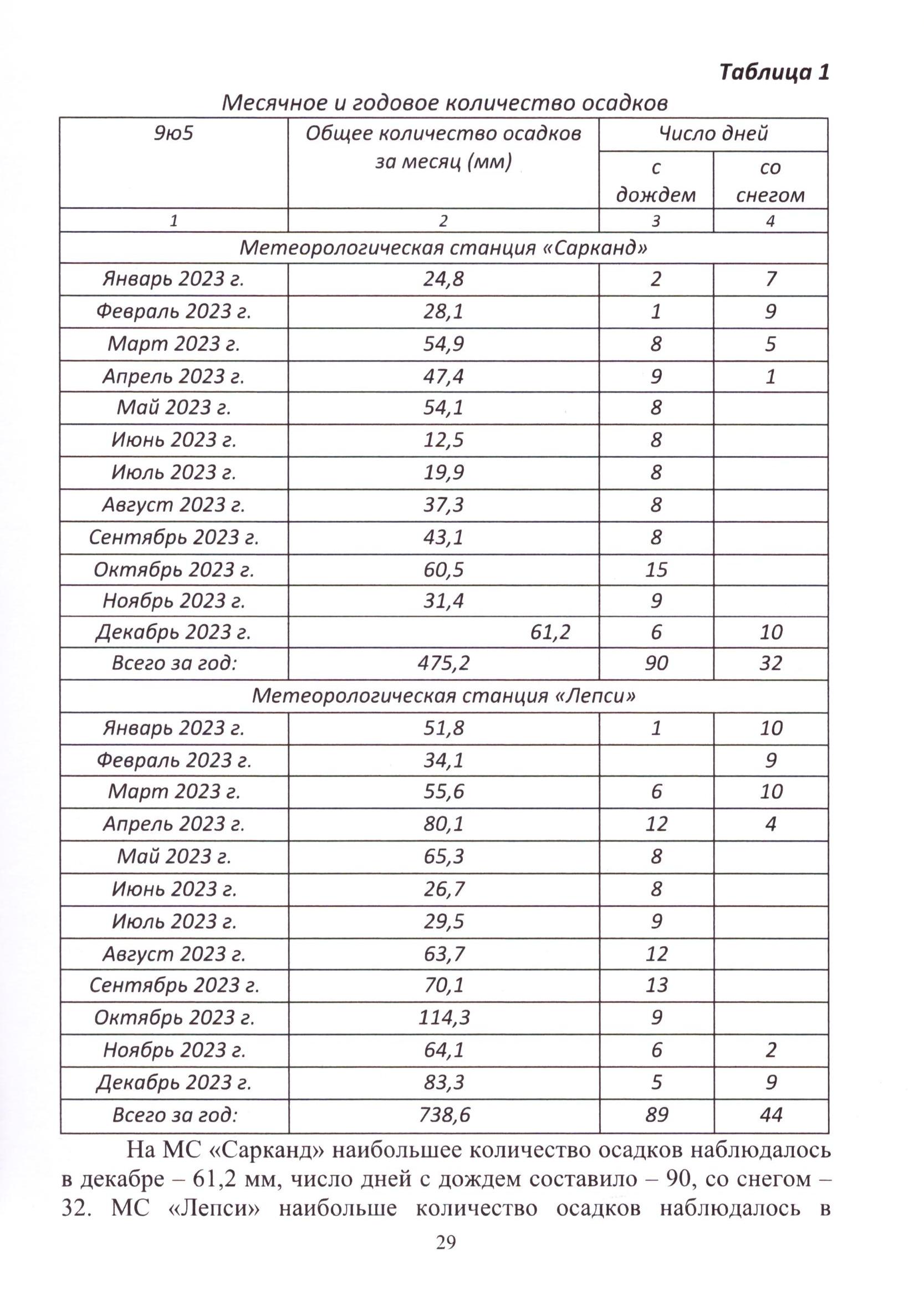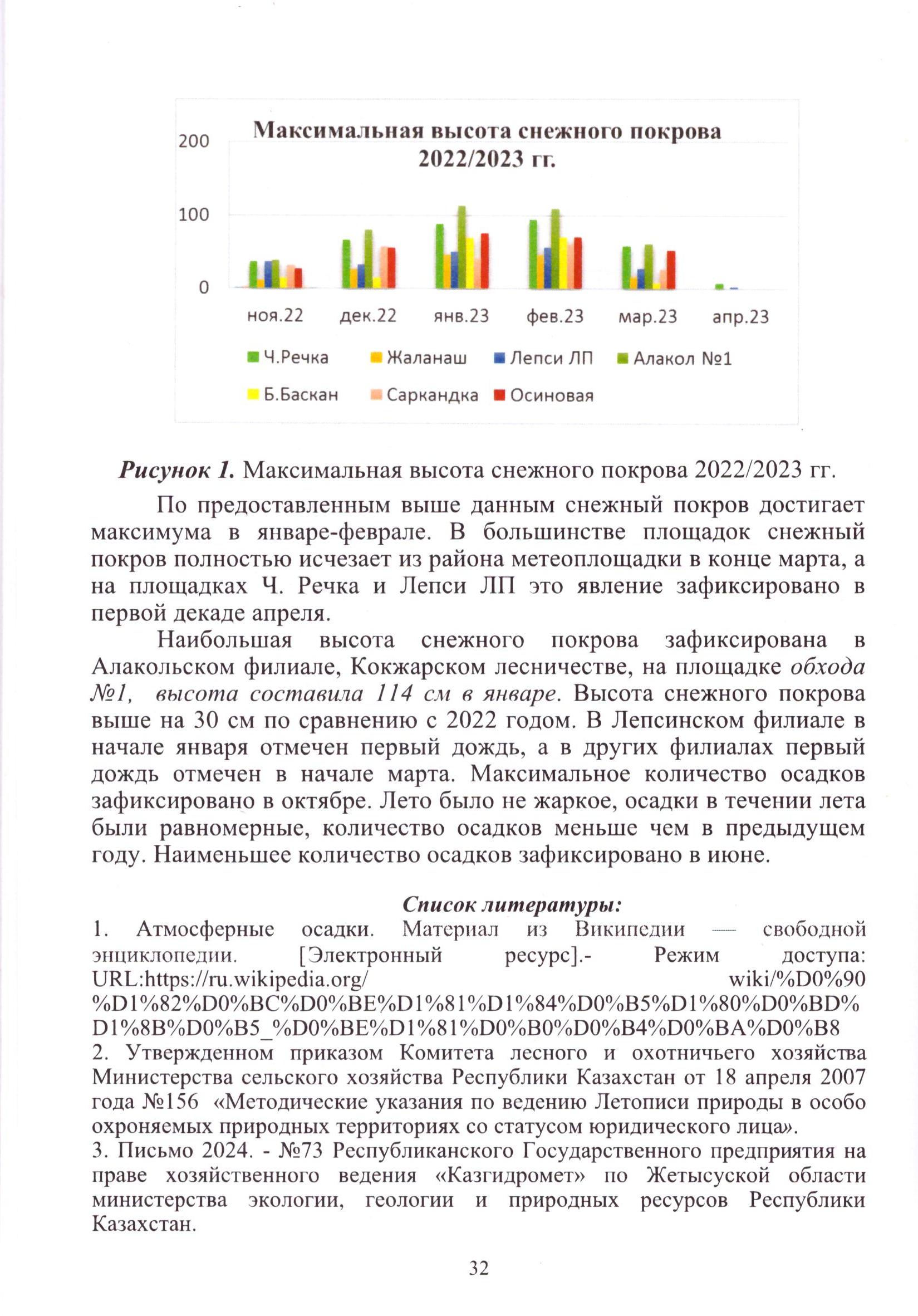 Анализ динамики выпадения осадков в природно климатических условиях Жонгар-Алатауского государственного национального природного парка за 2023 год (2024 г.)