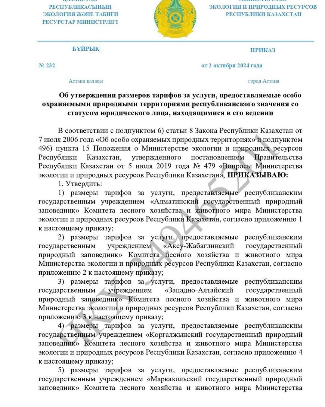 Официальные ресурсы Комитета лесного хозяйства и животного мира МЭПР РК